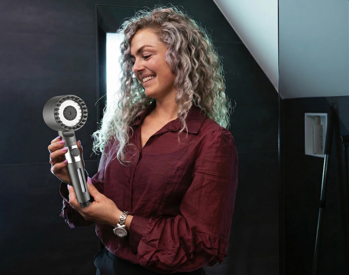 ZOVĀ reduces chlorine, heavy metals, and hard water minerals that coat your skin and hair. By filtering these impurities, it helps protect your skin barrier and improve how your hair and skincare respond over time.